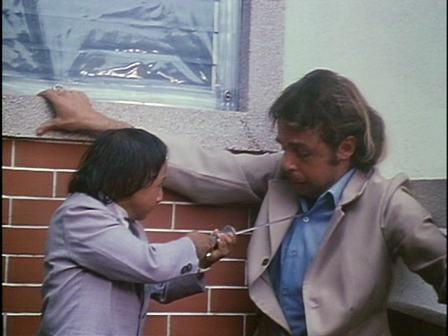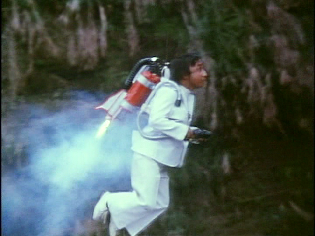 It’s the items Agent 00 receives along the way that lead to the most memorable scenes however, most notably one where he jumps off a block of flats while holding an umbrella (clearly turning into a dummy during the wide shot, smacking its legs off the side of the building as it gracelessly tumbles down) and another where he is given a jetpack. Yes, this film has a midget with a jetpack. Naturally, when I watched this with a primarily Glaswegian audience, one chap was heard to excitedly exclaim “awww fuck offff” during this scene.