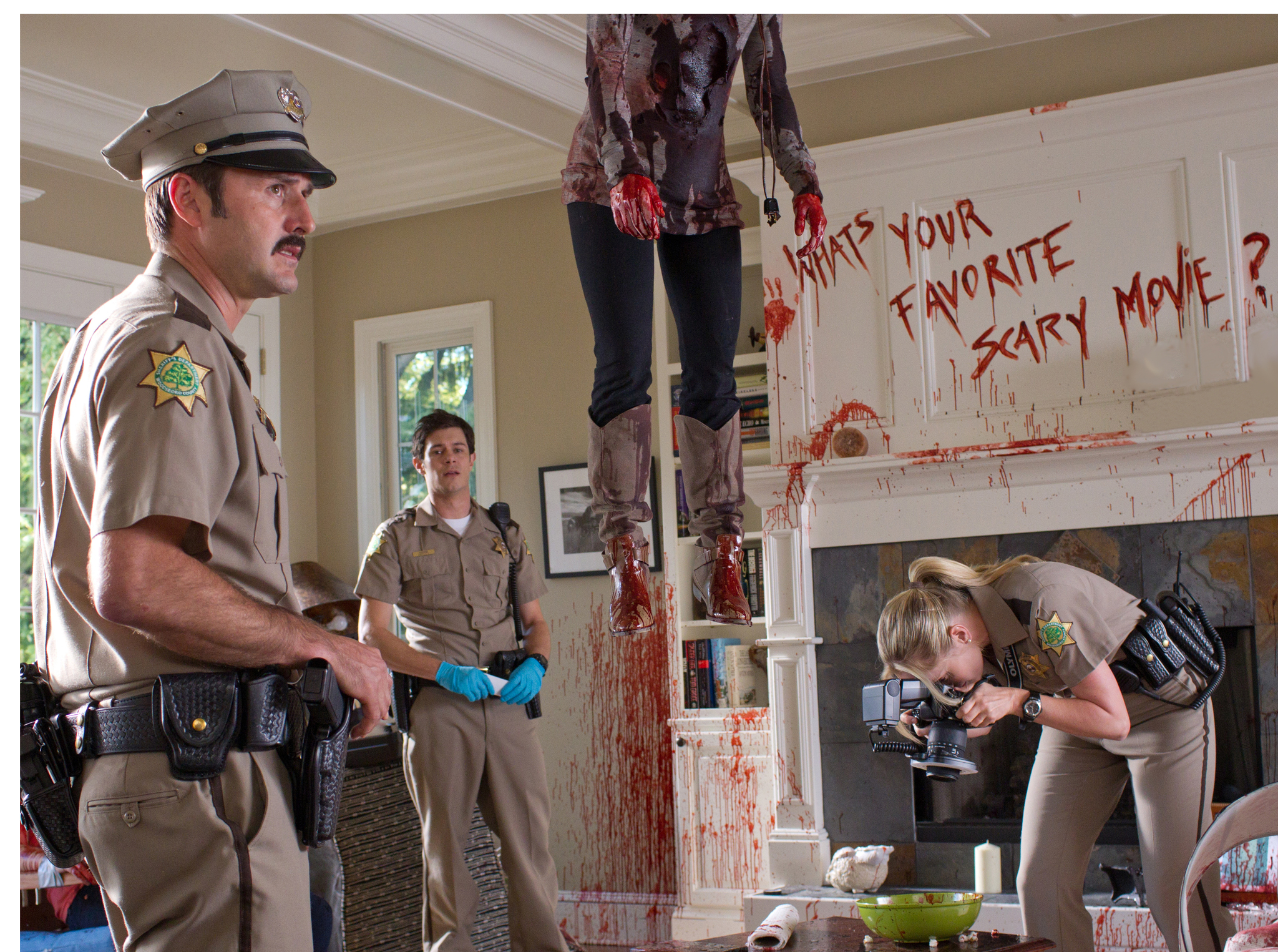 And so the usual “what’s your favourite scary movie” spiel continues, with newer films added to the killer’s trivia repertoire and more graphic threats made over the phone. The killer is made harder to identify now because it’s revealed early on (when someone calls their friend to trick them) that there’s a voice-changing phone app, one that potentially anybody could be using. The film geeks this time are a couple of horror nerds who screen annual movie marathons of the eight Stab films.