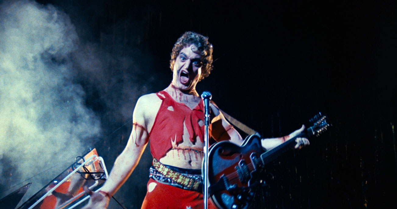 Without going into too much detail, Phantom Of The Paradise continues to introduce a variety of mental plot points and other bizarre asides, including a deal with the devil, a vampire-themed band who cuts off fake limbs while performing, magical ageing photographs and a glam-rock junkie singer called Beef.