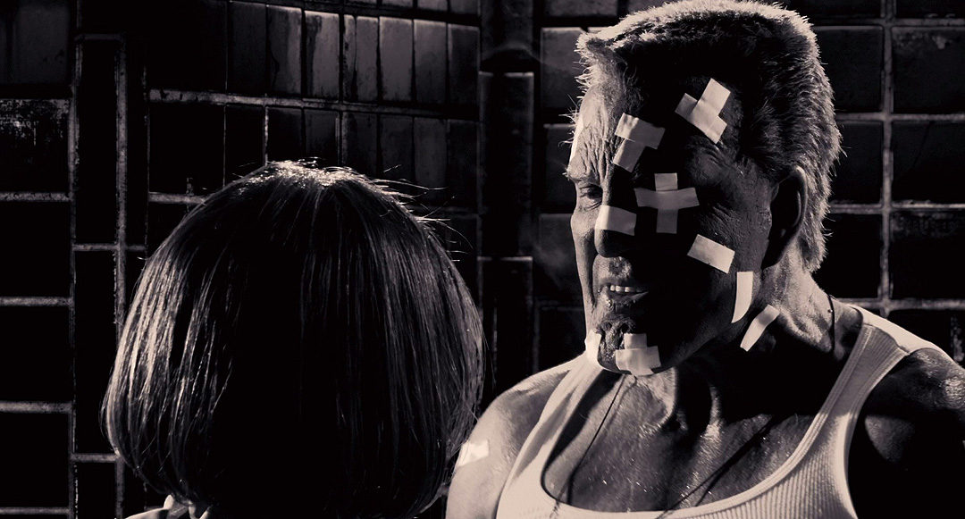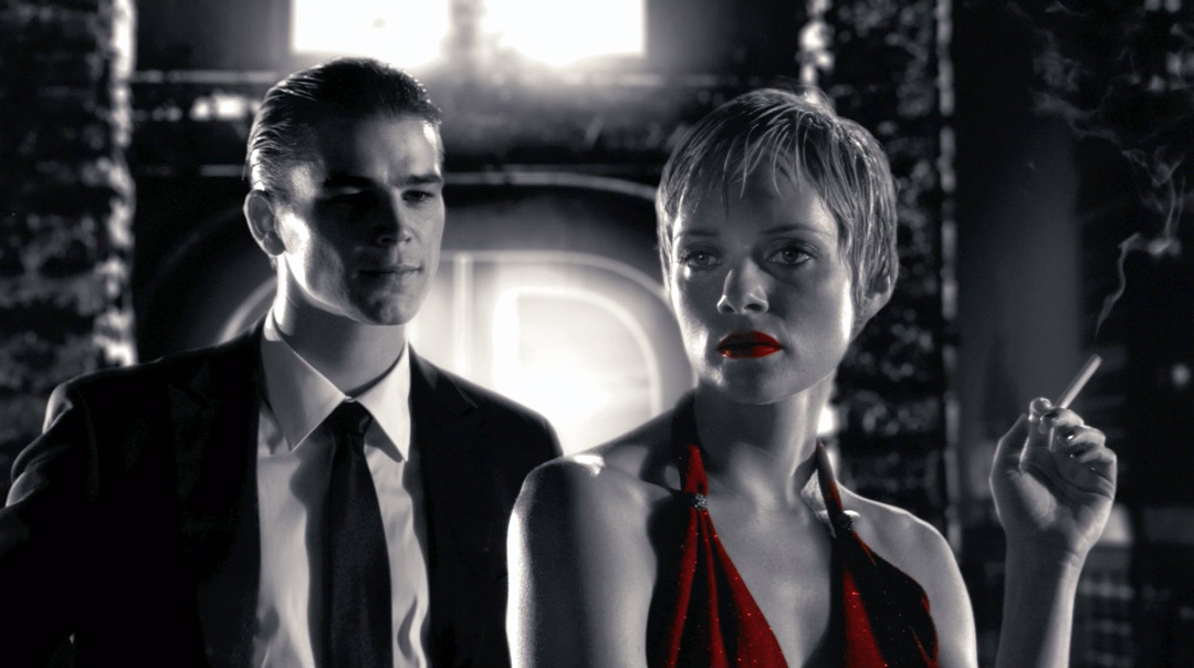 It’s little wonder Miller was impressed: Sin City looks astounding. Presented mainly in stark black-and-white (with very little room for greys), you’ve never seen a film that looks quite like this. But more on that in a bit.
