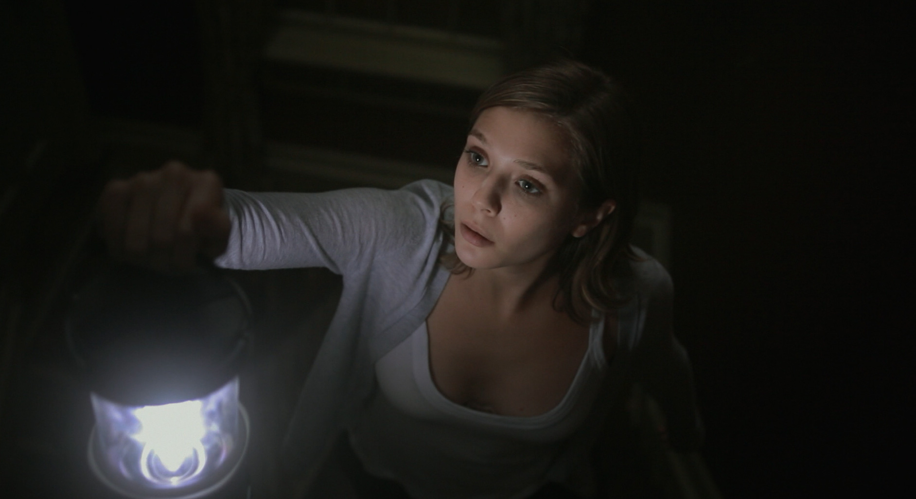 The handheld camera used throughout sticks really close to Olsen, meaning as she enters each room and struggles to see in the darkness, you too are struggling along with her, trying to scope out her surroundings for potential dangers.