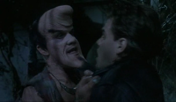 Yes, there are a couple of deaths, but they all happen off-screen so we don’t really know what happens. The only one that’s sort of shown is when Pumpkinhead uses the tried and tested “pick up by the head”, climbs a tree then drops the person he’s carrying. Naturally however, we don’t see the impact. To be fair, there’s one clever moment where an unfortunate chap is impaled on a rifle, but that’s about it.