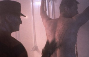 All these are mere foreplay, however, compared to the scene in which a sleeping Jesse, under Freddy’s control, walks to the nearest gay S&M club and finds his gym teacher there wearing a tight leather outfit. The teacher takes Jesse back to the school and makes him run laps in the gym, but afterwards Jesse, as Freddy, ties him up with skipping ropes in the shower, strips him, whips his bare arse with a towel then gives him the old fingerknives in the back (penetrating him from behind, if you will). If the cast and crew genuinely weren’t trying to make a gay movie, you have to wonder what the hell they were thinking here. I’m not just making this up, you know, here’s an entertaining behind-the-scenes video with the film’s cast admitting they had no clue. They’re incredibly honest and stunned at how gay they made the film. It’s a must-watch!